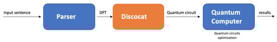 - Coecke, B.; de Felice, G.; Meichanetzidis, K.; Toumi, A. Foundations for Near-Term Quantum Natural Language Processing. arXiv 2020, arXiv:2012.03755. [Google Scholar]