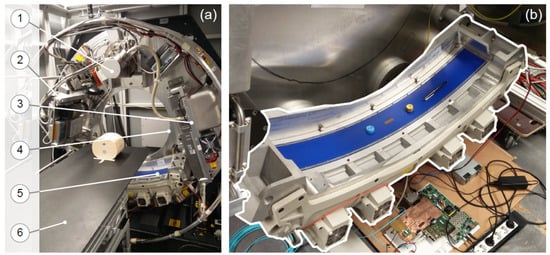 18]. The X-ray tube system, collimators, and detector are fixed on the rotating disk, mounted on the gantry; the rest of the components are fixed on the stationary side. The communication between the rotating and stationary sides is done through slip-ring technology consisting of brushes that permit the electrical connection between the rotating and stationary sides.