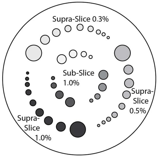 50]. The different low contrast are useful for identifying small low contrast objects, such as tumors. Subslice targets have a nominal 1.0% contrast and z-axis lengths of 3, 5, and 7 mm. For each of these lengths, there are targets with diameters of 3, 5, 7 and 9 mm [