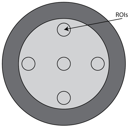 15]. For selecting the ROI, we used the reconstructed images shown with red and blue circles in