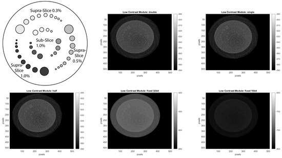 48]. However, in our research, we are interested in comprehending the influence of the data formats on the image quality, independently by the CT scanner and acquisition configuration. Therefore for our experiments, we used one scanner with a single configuration for the CT acquisition. Additionally, we used the CATPHAN