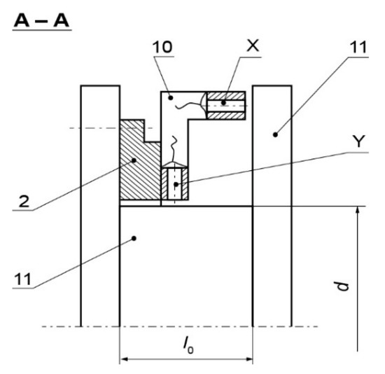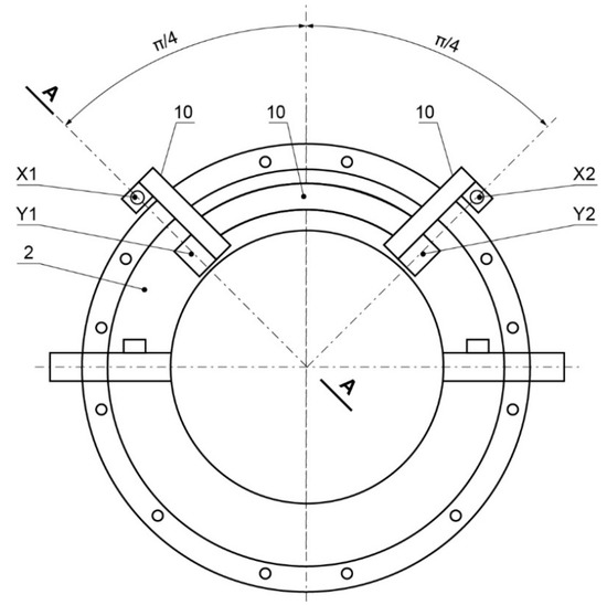 The torsional vibration angular acceleration as a function of the rotation angle can be measured at the free end of the rotor shaft. It is recommended to perform the measurement of torsional vibration and free end axial vibration by the sensors head equipped with a non-contact Ferraris sensor, eddy current sensors and key phasor with a converter. Sensors heads of the rotor shaft free end and radial slide bearing are presented in Ref. [52]. The novelty of this paper is also the rotor position head. For a machine set where one machine is a piston machine, it is justified and possible to construct rotor position heads. The position head allows simultaneous measurement of relative radial and axial vibration of the journal center in the flywheel bearing.