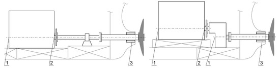 The functional unit specified in this article, called a “machine set rotor”, has a shaft made in one piece (Figure 2a) or a shaft consisting of two shafts connected by a coupling (Figure 2b). Where two machines are connected through a transmission (Figure 2c), two rotors of a machine set are distinguished: one is a rotor of the driving machine and a rotor of the first transmission shaft; the other is the last rotor of the transmission and the rotor of the driven machine. Other elements can be placed between the coupling discs of the machines: intermediate shaft, flexible coupling, a clutch or others. Both single machines of a machine set may have more than one rotor.