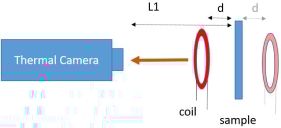 The measurements performed in this manuscript using induction heating are performed using a 1.5 kVA Leon LIH-15 heater. The heating energy is transferred to the sample through an induction coil containing two windings. The induction heating device is mounted using a clamp at the desired location and distance next to the sample to be inspected. The sample is heated using inductive step heating. The pulse duration can be found in Table 3. A visualization of the measurement setup can be seen in Figure 3.