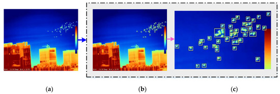 Two datasets are used in our experiment, one from the largest publicly released thermal infrared video dataset TIV [36] and the other from the dataset taken by ourselves. Three videos of bats with different densities taken from three viewpoints are selected from TIV [36], and they were called Davis08-sparse, Davis08-dense, and Da-vis13-medium, respectively, which describes real world scenarios of bats emerging from their caves in large numbers with a resolution of 640 × 512. In addition, we also provided two 5-min infrared videos of a flock of birds with unknown names taken near the airport at different time periods, with the number of birds ranging from 50 to 200.