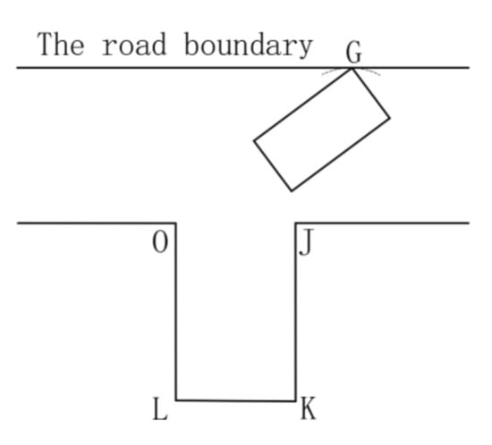 As shown in Figure 5, the collision between the outer contour line of the vehicle and the left dimension line should meet two constraint conditions: (1) the constraint condition of point O of parking space exposure is satisfied; (2) a safe distance is kept from the size line on the left side after alignment.
