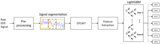 - Albaqami, H.; Hassan, G.M.; Subasi, A.; Datta, A. Automatic detection of abnormal EEG signals using wavelet feature extraction and gradient boosting decision tree. Biomed. Signal Process. Control 2021, 70, 102957. [Google Scholar] [CrossRef]
