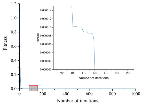 The initial fitness function was calculated, and the particle position and global optimal solution were updated according to the fitness function. The fitness function of QPSO is shown in Figure 2.