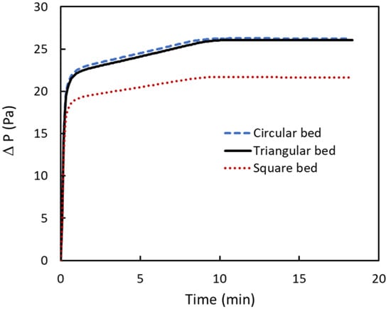 - The pressure drop is lower for the square bed, about 17% less than the circular one. The triangular bed has slightly lower values compared to the circular beds.