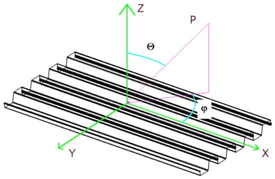 Corrugated or fluted panels are referred to as orthotropic because they are stiffer along one direction than the other. Heckl [,] analyzed sound transmission through orthotropic panels. He derived some approximate solutions for the transmission coefficient for panels of the infinite extent, with the effects of panel damping neglected. The earliest works focus on the calculation of moments of area of the profiled metal sheet [], on the sound absorption and TL of single metal skin cladding with varying profiling and thickness [], on the dependences of the profile to critical frequency [], or the application of finite element and boundary element analysis to predict the TL of a corrugated and fluted steel sheet [].