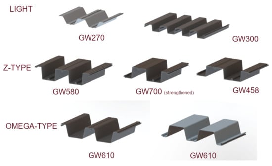 Sections of the tested panels are shown in Figure 3, and the panel properties are included in Table 1.