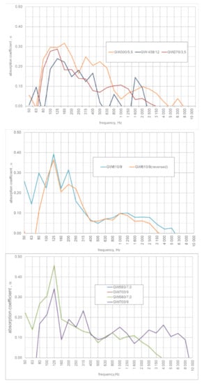 A critical problem during the design, construction, and exploitation of vehicles, buildings, or machinery is not only the energy efficiency but also good fire or sound insulation. Determination of the sound absorption (absorption coefficient-α) and sound transmission loss (TL, insulation parameter) of materials have become a necessity because of the technical progress and thus increased number of noise sources. Currently, noise pollution is one of the world’s leading environmental problems, and approximately 40% of European Union (UE) residents are exposed to noise []. The latest research demonstrated that long-term exposure to noise in urban areas has a negative impact on health, causing 12,000 premature deaths and contributing to 48,000 new cases of ischaemic heart disease every year across Europe []. Different actions are taken to ensure the reduction of noise pollution, for example, by correcting the noise wave propagation to exposed people using panels, barriers, and screens to block the direct path of sound.