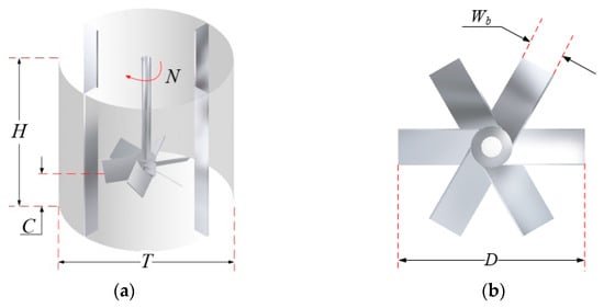 A schematic diagram of the stirring device. (a) The stirred tank; (b) PBTD.