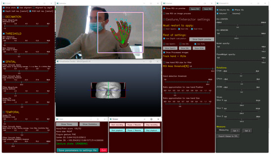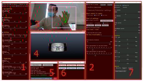 Feedback on visual interaction provides important information for the contactless hand gesture control system. In order to enable all the features, it is necessary that the surgeon understands how to control our application. Several requirements/program features were implemented in our user interface, as shown in Figure 2, to enable fast feedback and accurate and precise interaction with the system: