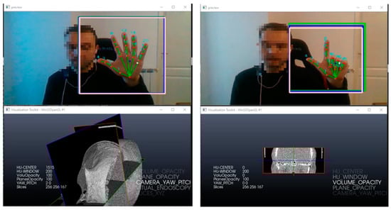 In the present medical world, without touching the screen during the contactless visualization of medical datasets [], we enable virtual diagnostics and surgery of 3D spatial data [], and we can shape the visualization in a way that does not exist in reality. We also proved that it is possible to use technology to make something that we cannot see in the real world, visible to doctors/surgeons, i.e., to experience and understand what we cannot realistically see, or what does not really exist as shown in touch-free navigation through radiological images presented in [].