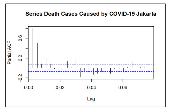 PACF plot for death cases caused by COVID-19 in Jakarta.