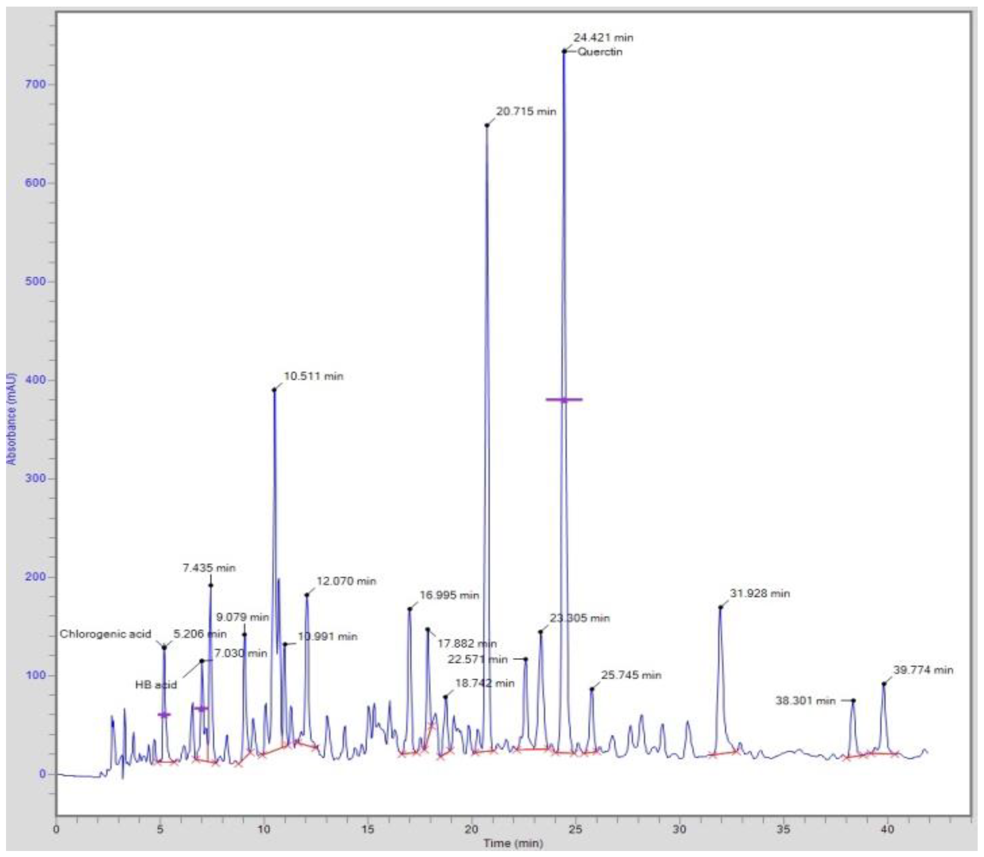2.3. Quantification of Phenolic Acids and Flavonoids by HPLC