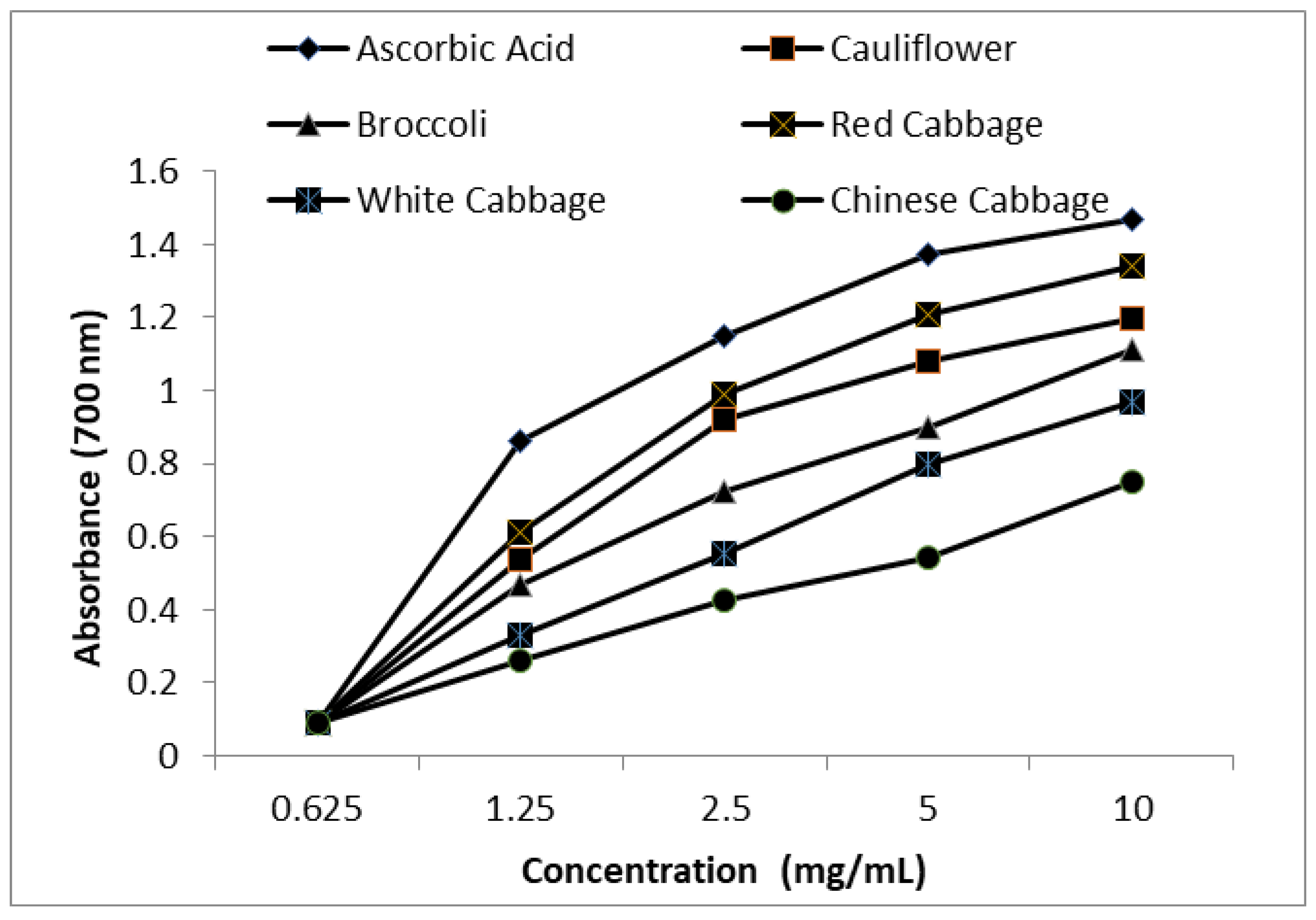 | Cauliflower | 15.0 ± 0.55 c | 6.0 ± 0.31 a |
