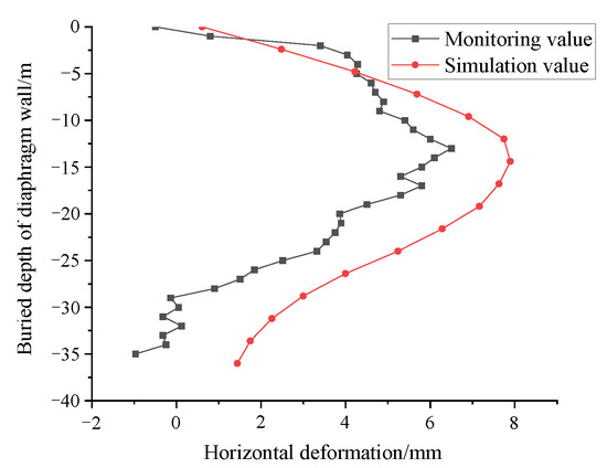 Horizontal deformation comparison diagram of ground wall.
