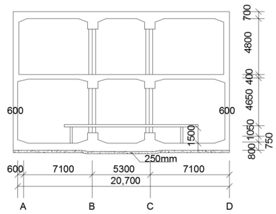 According to the Code for Design of Concrete Structures (GB50010-2010) [32], the concrete materials, structural dimensions and matched steel bars of the existing structures, as well as the design data of the existing structures, the lateral and longitudinal bearing capacity of the existing structures are calculated, respectively. The lateral carrying capacity of the existing structures is shown in Table 7.