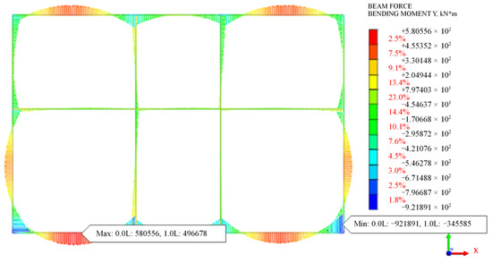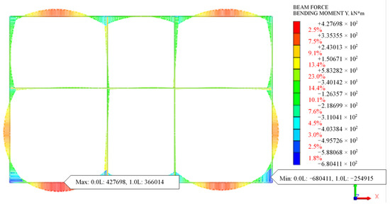 The initial and additional internal force values of the existing structures are calculated, respectively, as shown in Figure 19 and Figure 20.