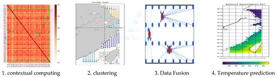 In recent years, the rapid development of artificial intelligence has brought new ideas for ocean data fusion. Machine learning is an important method to realize artificial intelligence. It is a method of using algorithms to analyze and learn from data, and then make decisions and predictions about phenomena in the real world. As a technology for realizing machine learning, deep learning has the advantage of proposing a method for the computer to automatically learn pattern features, and integrating feature learning into the model building process. It reduces the incompleteness caused by man-made design features and has more advantages compared with OI, 4DVAR, and KF, conceptually. At present, machine learning has a very wide range of applications [,,], such as language recognition, image recognition, data mining, and expert systems, etc. Some machine learning algorithms are used in the assimilation of ocean remote sensing data, such as genetic algorithms [] and neural networks []. These data fusion methods have shown certain advantages in different aspects. However, they only assimilate data of type and homology. In addition, the past statistical methods rely more on regression analysis for spatial modeling, and the model input parameters are relatively single.