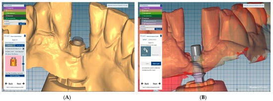 Another potential issue in the digital implant impression procedure is the subgingival margin exposure for the impression, which implies the use of a lateral gingival displacement technique or the registration of subgingival contour based on previous interim restorations [,], custom impression copings [], or healing caps [].