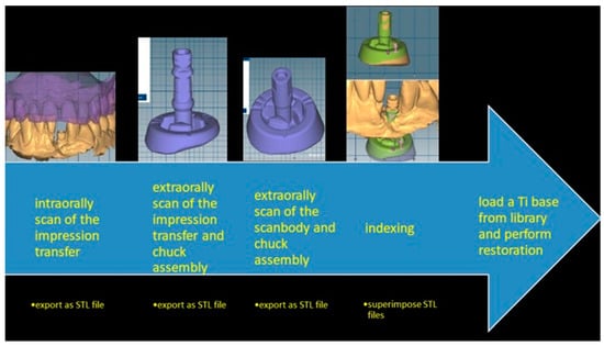 - Michelinakis, G.; Apostolakis, D.; Kamposiora, P.; Papavasiliou, G.; Özcan, M. The direct digital workflow in fixed implant prosthodontics: A narrative review. BMC Oral Health 2021, 21, 1–24. [Google Scholar] [CrossRef]