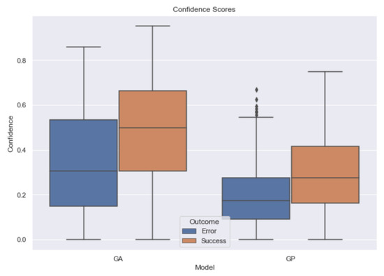 Box plot of confidence scores computed on the test. Confidence scores are partitioned by misclassifications and correctly classified records.
