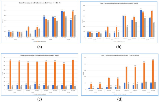 Time consumption for each forensic tools in different test case. (a) FIT-ID-01. (b) FIT-ID-02. (c) FIT-ID-03. (d) FIT-ID-04.