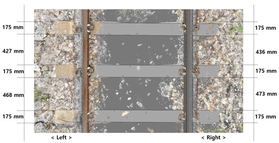 As mentioned above, the shape dimensions of the ballasted track used in the Korea National Railway, including the rail, ballast, and concrete sleepers, were referenced by considering testbed experiments in selecting the ballast representative parameters to be considered in this study. The utilization values of representative parameters for object detection were increased by selecting representative parameters corresponding to track gauge, ballast refill, sleeper irregularities, and sleeper exposure as management criteria for track irregularities in this study.