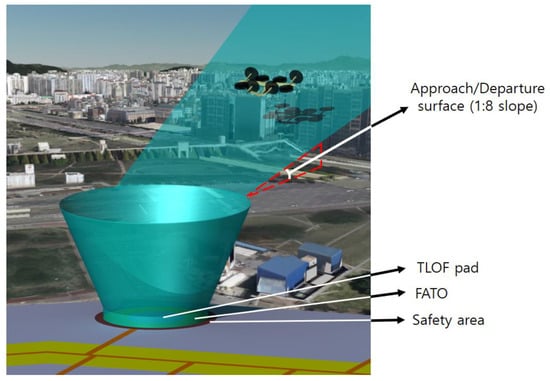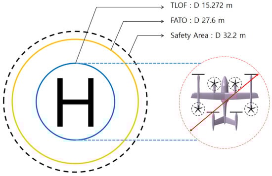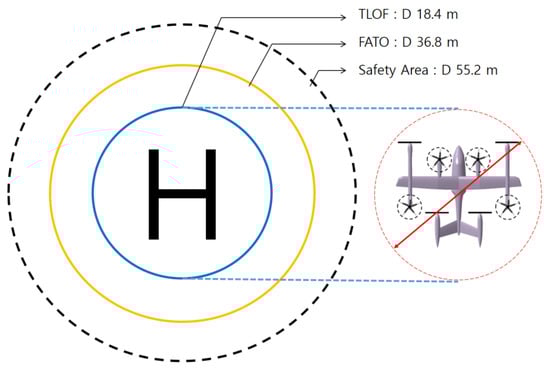 - Michael, A.P.; Meyers, P.E. Engineering Brief No. 105, Vertiport Design. Memorandum, Airport Engineering Division, AAS-100, Federal Aviation Administration, 2022. Available online: https://www.faa.gov/airports/engineering/engineering_briefs/drafts/media/eb-105-vertiport-design-industry-draft.pdf (accessed on 5 March 2022).