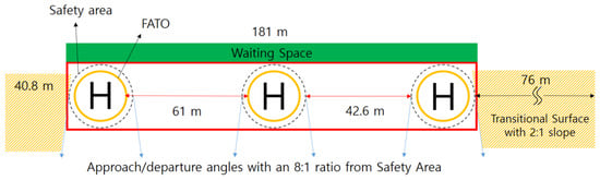 - Federal Aviation Administration, Heliport Design, AC No: 150/5390-2C, 4/24/2012. Available online: https://www.faa.gov/airports/resources/advisory_circulars/index.cfm/go/document.current/documentnumber/150_5390-2 (accessed on 7 February 2022).