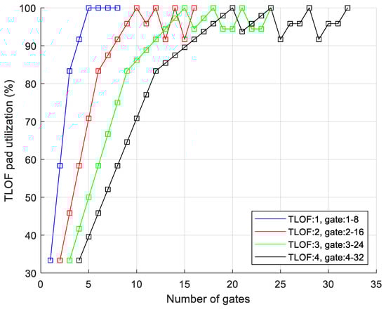 Topology | Number of TLOF Pads | Number of Gates | TLOF Pad Utilization (%) | Gate Utilization (%) |
