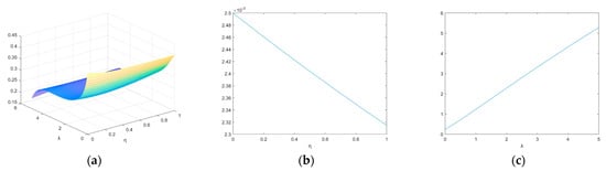 These numerical studies confirm that the decentralized case is the worst for profit optimization among all models. M, L, and F achieve higher optimal profit even when the other two parties form a coalition than when no coalition exists. In addition, it is further verified that the impact of risk aversion parameter η and fairness concern parameter λ is dynamic, not always positive or negative. The larger λ does not always lead to more profit being transferred to F. This phenomenon is different from what has been observed in supply chains [] which consider only fairness concern but not risk aversion. The larger , the less profit is transferred to L. It is understandable that lower risk endurance brings lower profit return.