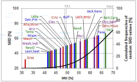 The variances are homogenous according to the Levene’s test. Neither F1 nor F2 are significant, which is reassuring: we have not introduced any (other than random) information during coding and resampling. However, approximately half of the teams cannot be discriminated from random ranking. Similarly, the lack of points in the 0 < SRD < 30 range calls for a better grading system; more information should be involved in the evaluation (Figure 8).