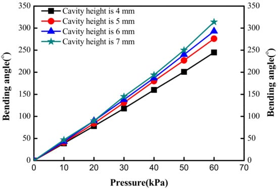4.3. Influence of Cavity Height on Bending Angle of Soft Actuator