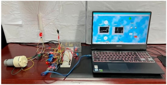 To test the performance of the soft gripper, the well-made soft gripper is controlled and actuated by the pneumatic control system composed of Labview software and the Arduino microcontroller. The control system of the soft gripper is shown in Figure 14. The human–machine interface was designed by Labview with Arduino acting as the computer to achieve the joint monitoring and controlling to the soft gripper. The soft gripper was made with the actuation of an air pump, the monitoring of four types of sensors, thin film pressure sensor, pneumatic pressure sensor, temperature sensor, humidity sensor, and the control of a relay module. In the experiment, the control button of the pneumatic control system on the host was operated. Additionally, according to the monitoring environment and the grasping object, the reference pressure value was set on the upper computer and sent to the lower computer for execution to control the pneumatic soft gripper, thus completing the grasping and releasing of objects with different masses and shapes.