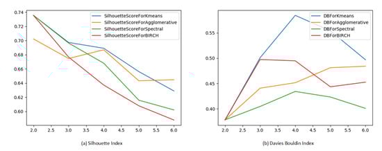 The performance of modified k-means variant [30], agglomerative [31], Spectral [32], and BIRCH [33] clustering is evaluated. Figure 10 shows the Sil index and DB index of each clustering algorithm varying with cluster number. Considering Sil index, k-means presents the best performance across all cluster numbers. While in terms of DB, it is equivalent to BIRCH clustering at two clusters. Nevertheless, k-means is employed for the purpose of slice selection for its intrinsic advantages such as scalability to large datasets and adaptiveness to data points cluster assignment [41].