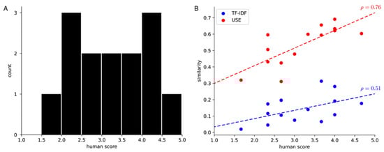 Figure 4A shows the histogram of the similarity scores calculated by the human evaluators (. The values of were centered around the mean of 3.17 and covered most of the maximum range from 1 to 5 with a standard deviation of 0.83.