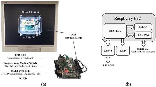 RPILAB module: (a) main components; (b) internal-structure block diagram.