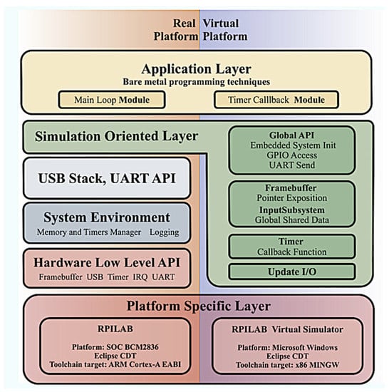 Software-architecture layers for application developing using Bare-Metal techniques on RPILAB module and its virtual simulator.