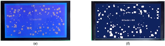 Results of unit tests (a–d) and functional tests (e,f) performed using TMSLAB real device (a,c,e) and its virtual simulator (b,d,f): (a) photograph of real TMSLAB graphic-layer test; (b) screenshot of virtual-simulator graphic-layer test; (c) photograph of real TMSLAB textual-layer test; (d) screenshot of virtual-simulator textual-layer test; (e) photograph of real TMSLAB system-level test; (f) screenshot of virtual-simulator system-level test.