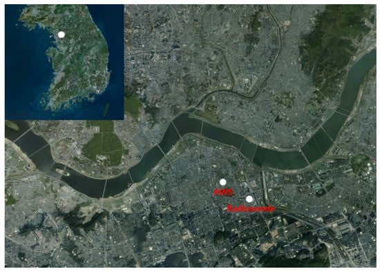 Satellite image showing radiosonde-launching site and AWS site in Seoul (NAVER map).