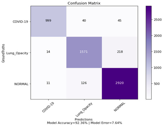 The previous studies had limitations in that a xhigh-class imbalance was observed and, also, they included very few COVID-19 chest X-ray images. As already mentioned, the highest number of images for COVID-19 used was 850, whereas the number of COVID-19 samples in the subject research work is about 4.25 times this number (3616 images). Therefore, the previous work had limitations regarding the low number of COVID-19 datasets and class imbalance. The current work has more than four times the highest dataset of COVID-19 images ever utilized, and the authors were interested to see the performance results for such a contrast between the current dataset and the previous datasets.
