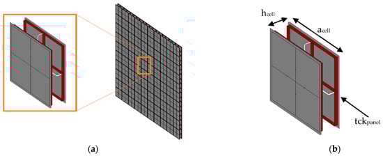 With this numerical approach, a single unit cell is modeled, saving a significant amount of computational effort. The performances of a complete periodic panel of size 800 × 800 mm were derived by applying the Bloch–Floquet boundary conditions [].