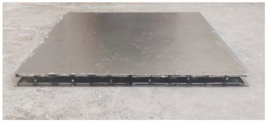 The unit cells with dimensions reported in Table 3 were manufactured and arranged to create the periodic structure. The Metasolution was finished by fixing two steel plates outside the elastic structure, as shown in Figure 8.