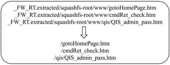 13]. For example, in CVE-2021-33251, “model.cgi” of Qihu360-F5C will leak the device’s mac address and firmware version due to a lack of permission restrictions. It should be noted that the CGI files of some devices are not located in the webroot directory. We will also match them to obtain the file name and add it to the page paths.