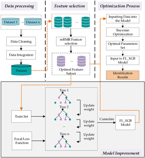 - The optimal combination of parameters obtained in step (7) is input into the FL-XGB model to obtain the optimal identification model. The final identification result of the output model, i.e., the evaluation value. The final identification result of the model, i.e., the evaluation value , is output.
