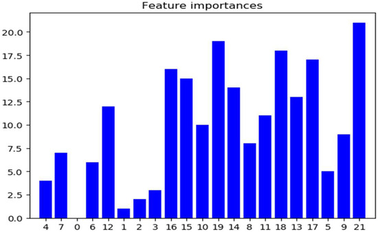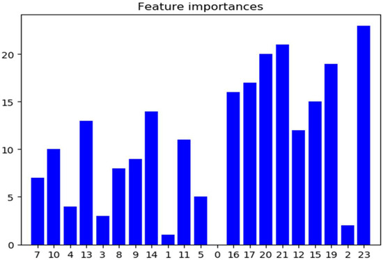 From the experimental results, when the number of features is n = 20, the accuracy obtained by using xgboost is the highest. At the same time, the feature redundancy is the lowest. Therefore, the feature number n is selected as 20 in this paper. According to Table 4, the selected features are the top 20 comprehensively ranked features. We verify the importance of the top 20 features of the composite ranking, as shown in Figure 9.